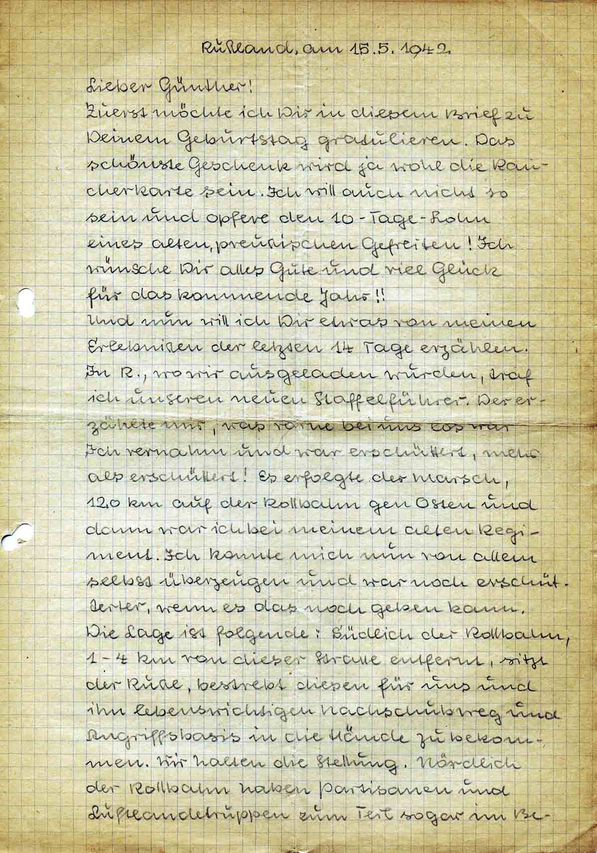 Gustav Roos an Bruder Günther, 15. Mai 1942