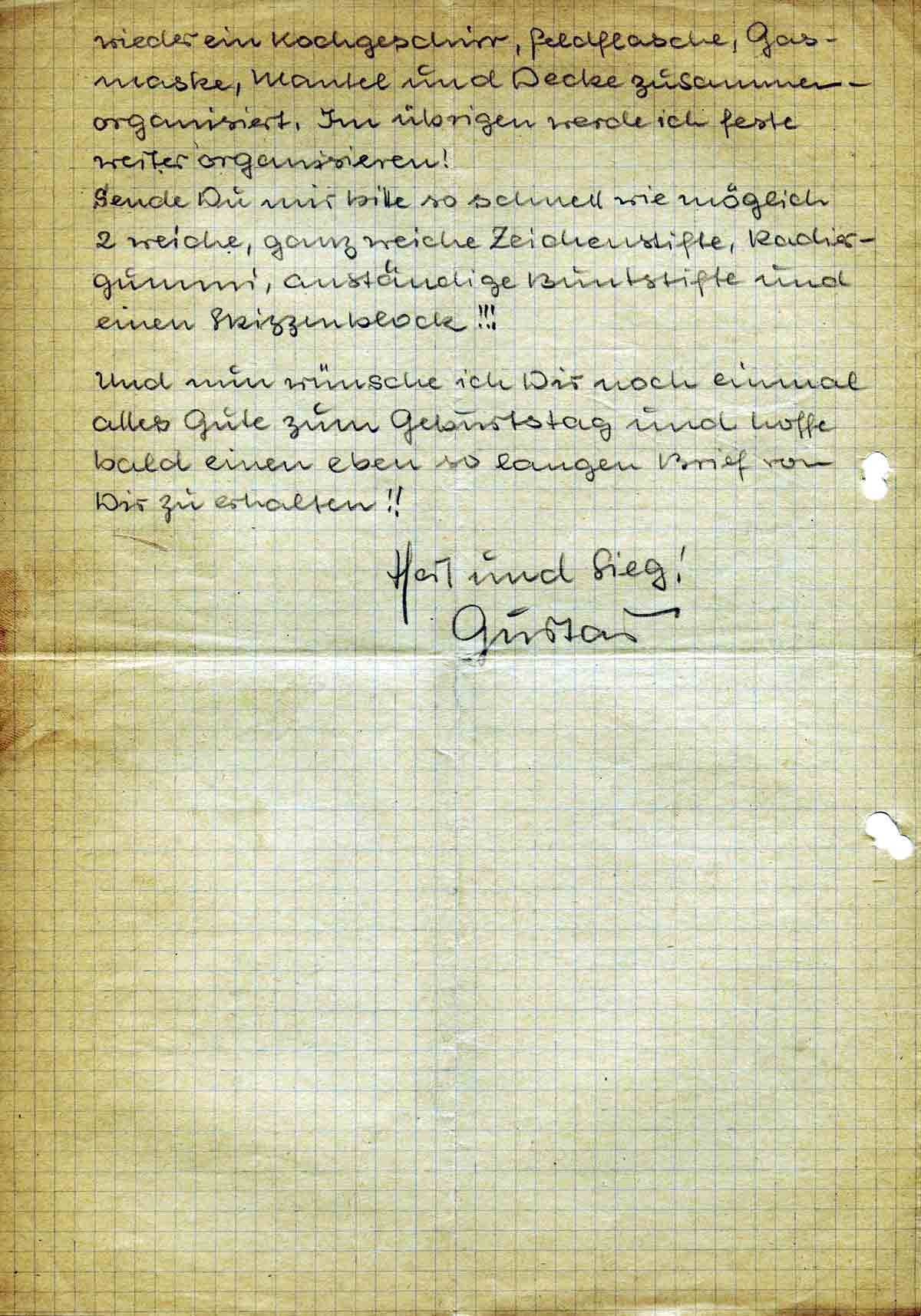 Und nun wünsche ich Dir noch einmal alles Gute zum Geburtstag und hoffe bald einen eben so langen Brief von Dir zu erhalten!!
