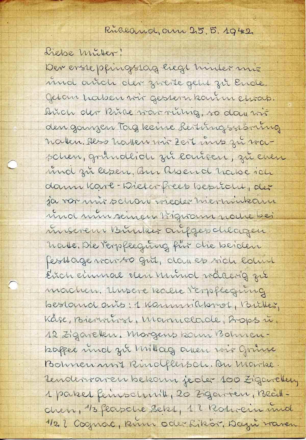 Gustav Roos an Mutter Elisabeth, 25. Mai 1942