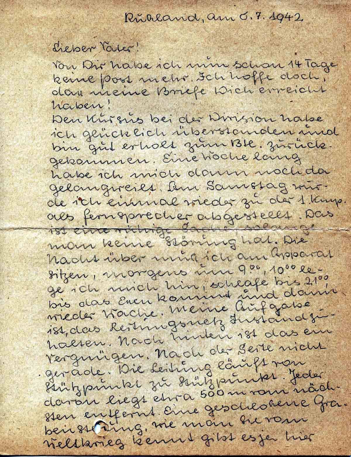 Gustav Roos an Vater Toni, 6. Juli 1942