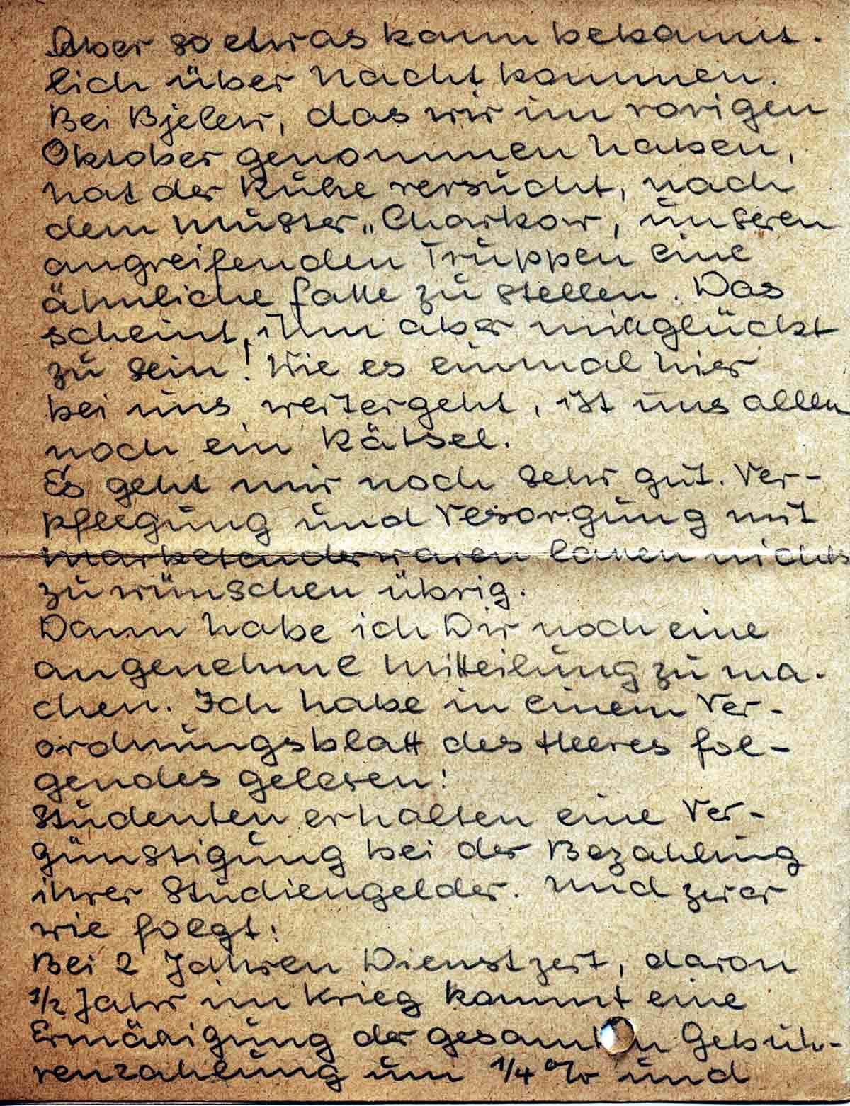 Noch etwas muss ich Dir mitteilen; denn das ist das erste mal: Oma hat mir selbst geschrieben! Wenn es auch nicht viel war, so habe ich mich doch sehr gefreut darüber!!
