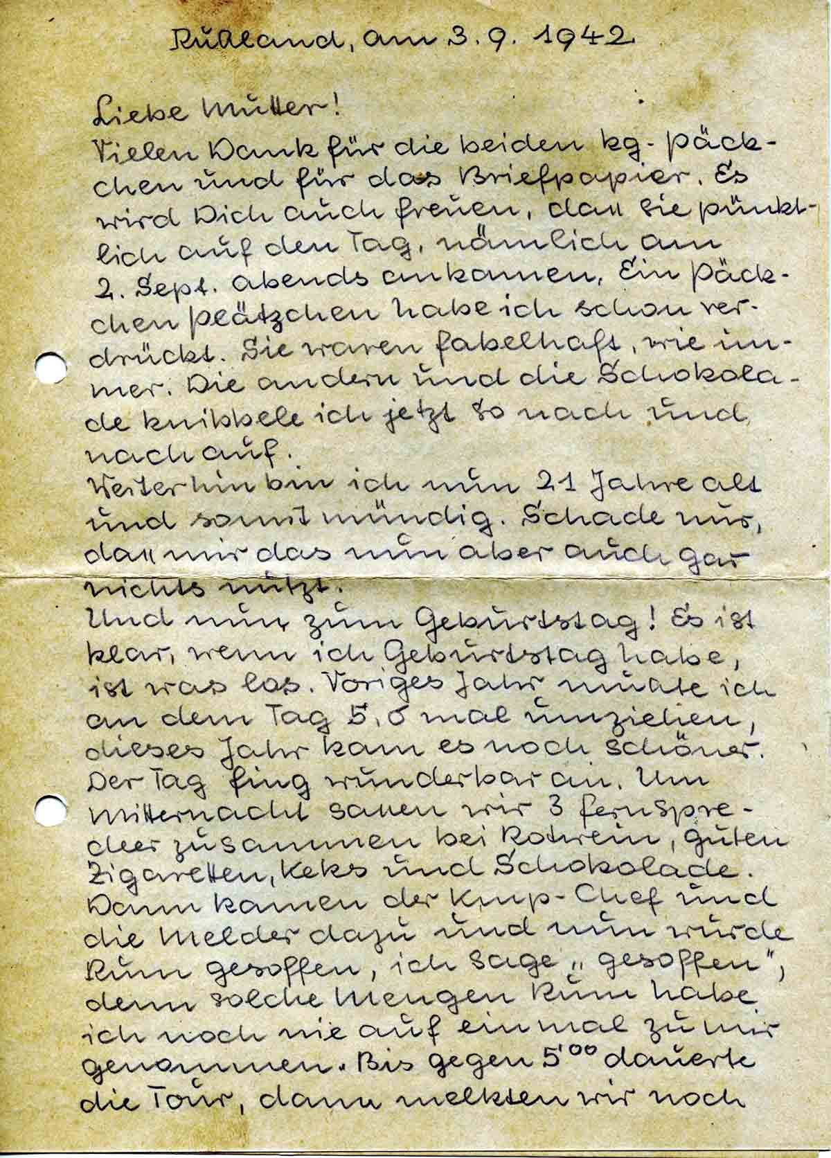 Gustav Roos an Mutter Elisabeth, 3. September 1942