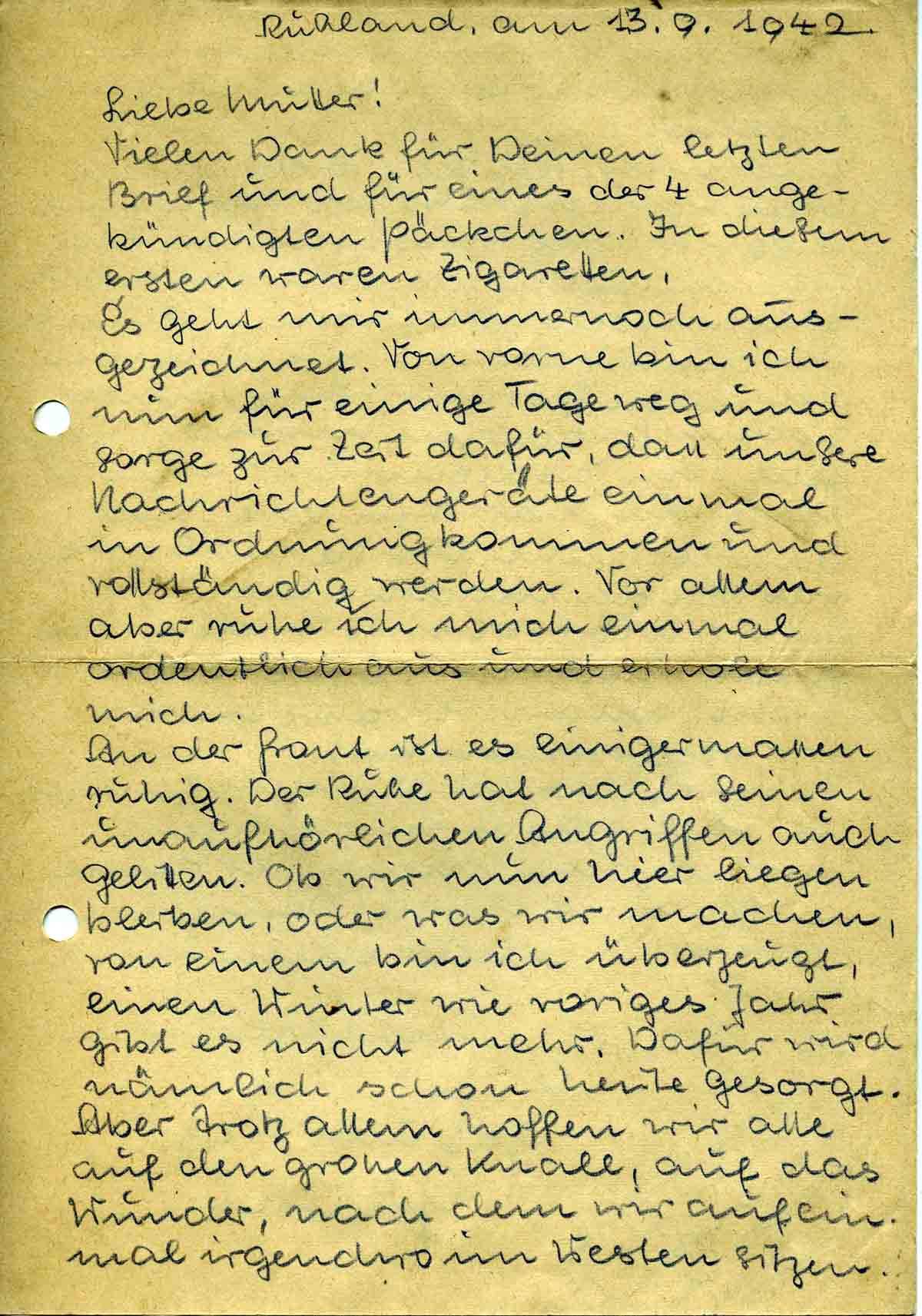 Gustav Roos an Mutter Elisabeth, 13. September 1942