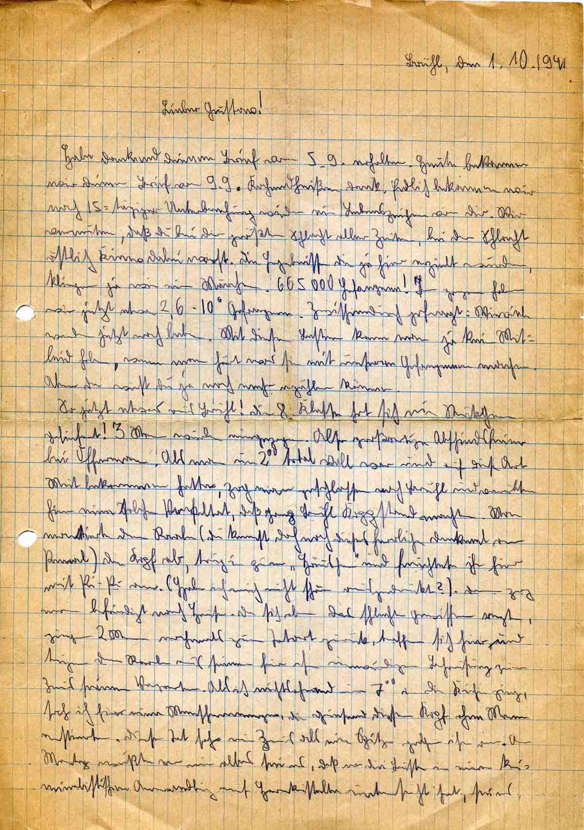 Günther Roos an Bruder Gustav, 1. Oktober 1941