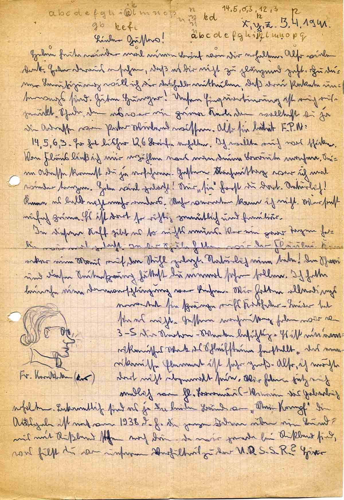 sind augenblicklich so dunkle Gerüchte im Umlauf, als stünden die Sowjets-Union hinter Jugoslavien, und als stände ein Krieg bevor. Also, ich glaube nicht daran, und zwar können sie 1. nur bei uns verdienen und erhalten landwirtschaftliche Maschinen. 2. wird Adolf ihnen schon zur richtigen Zeit den richtigen Happen vorwerfen (Indien?). Und 3. kennen sie unsere Wehrmacht und damit auch Dich, d.h. Du garantierst den Frieden mit der UdSSR.