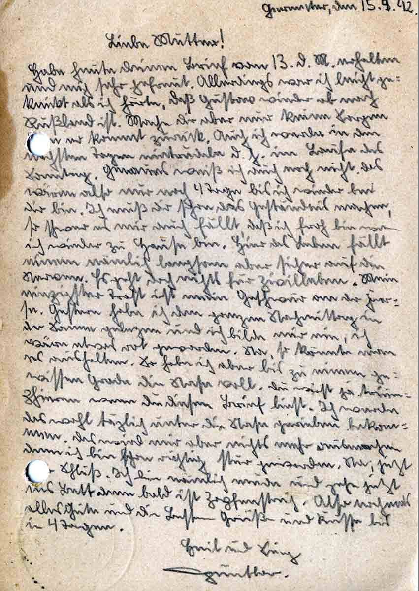 Günther Roos an Mutter Elisabeth, 15. April 1942