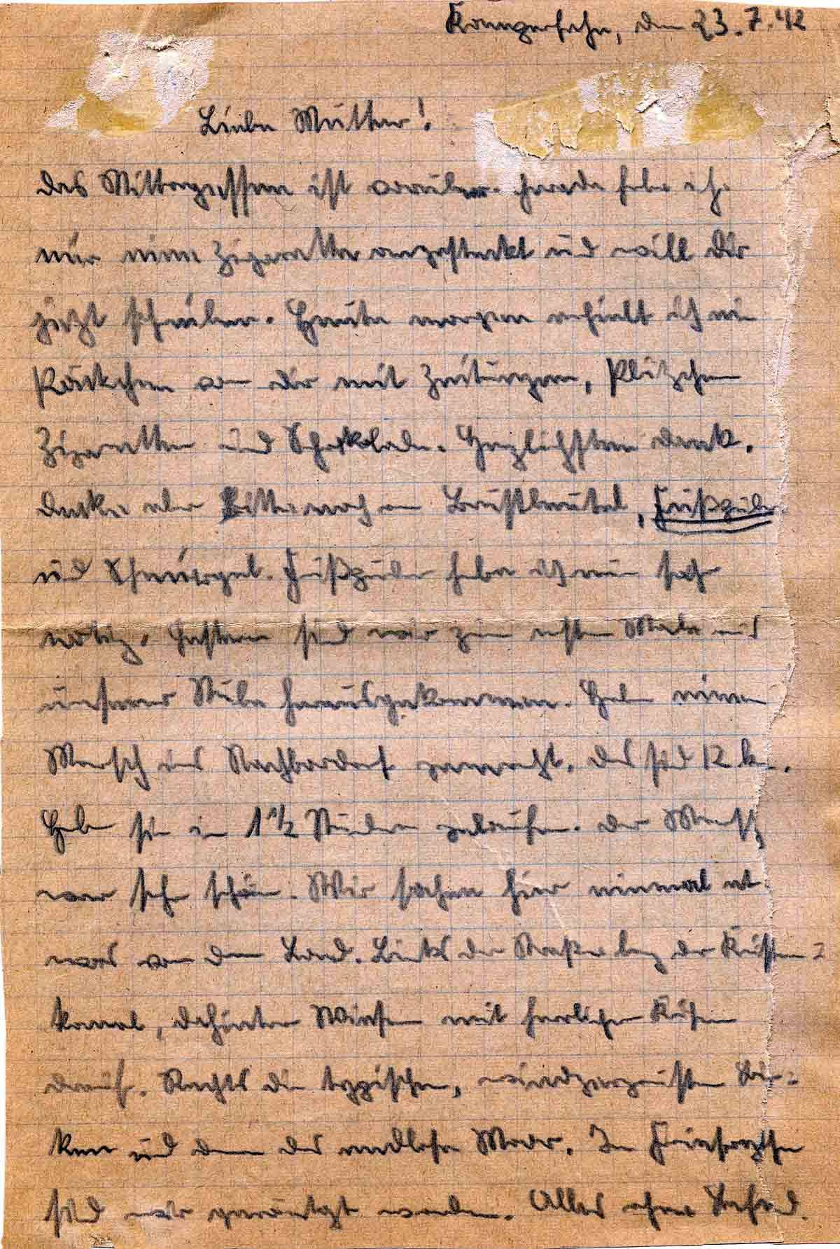 Günther Roos an Mutter Elisabeth, 23. Juli 1942