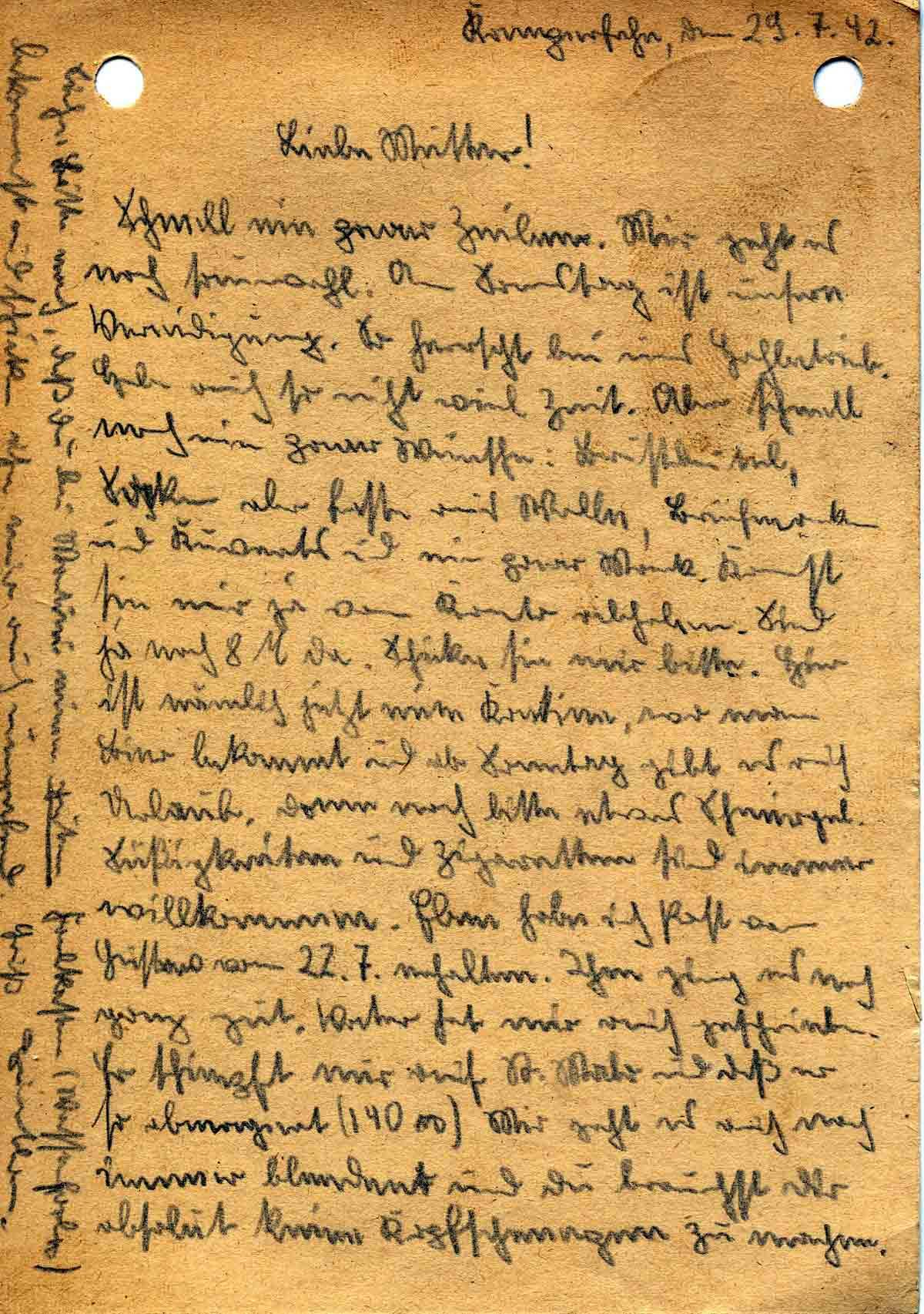 Günther Roos an Mutter Elisabeth, 29. Juli 1942