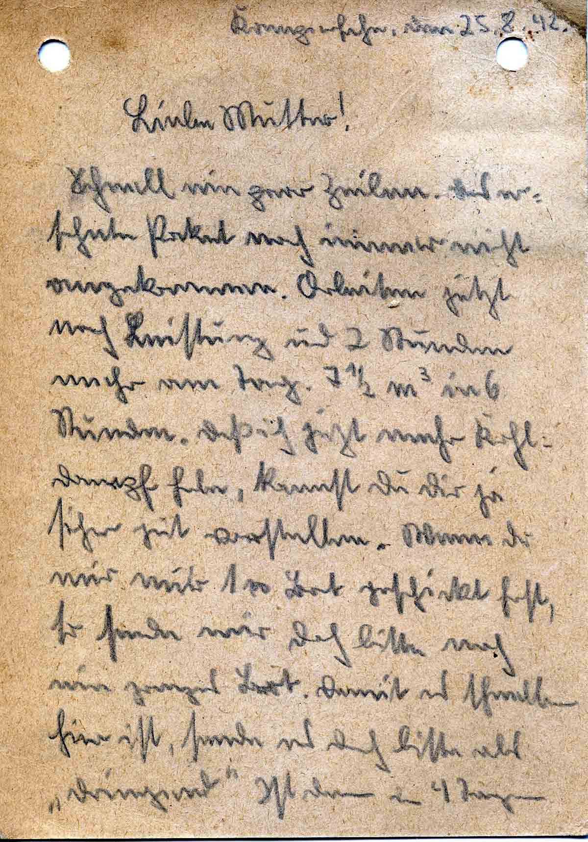 Günther Roos an Mutter Elisabeth, 25. August 1942