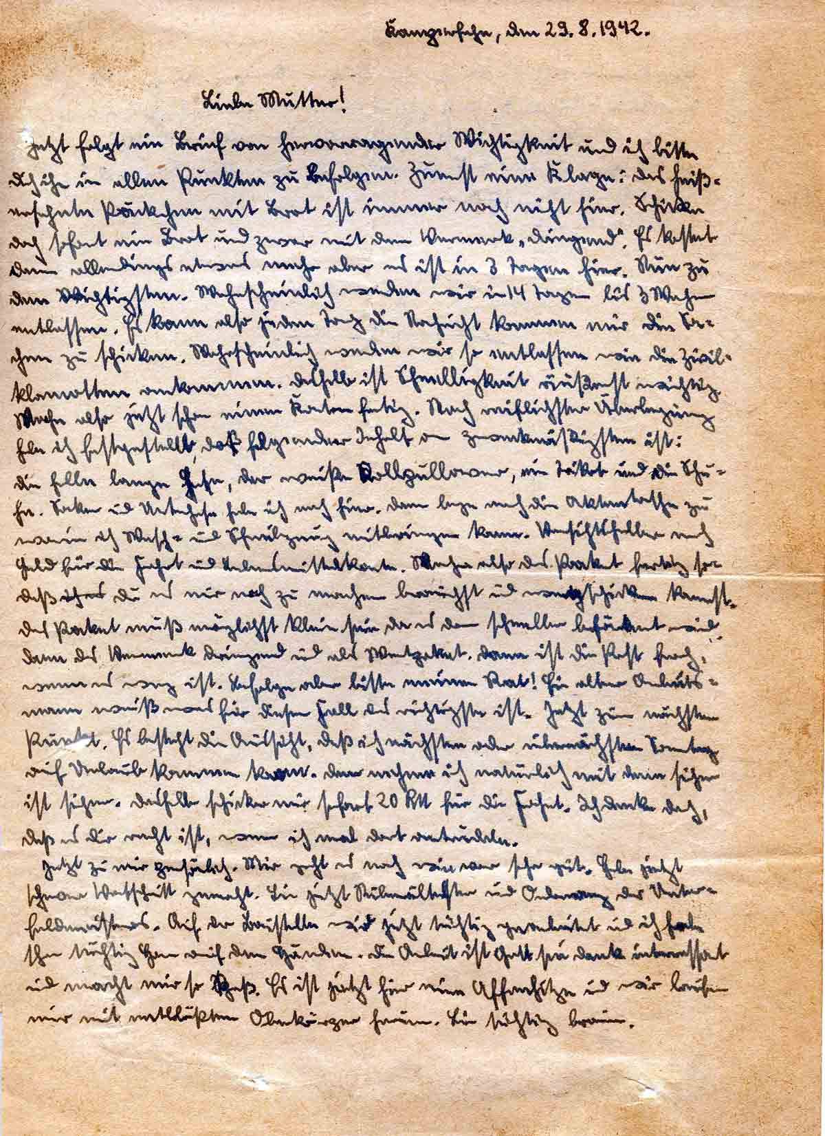Günther Roos an Mutter Elisabeth, 29. August 1942