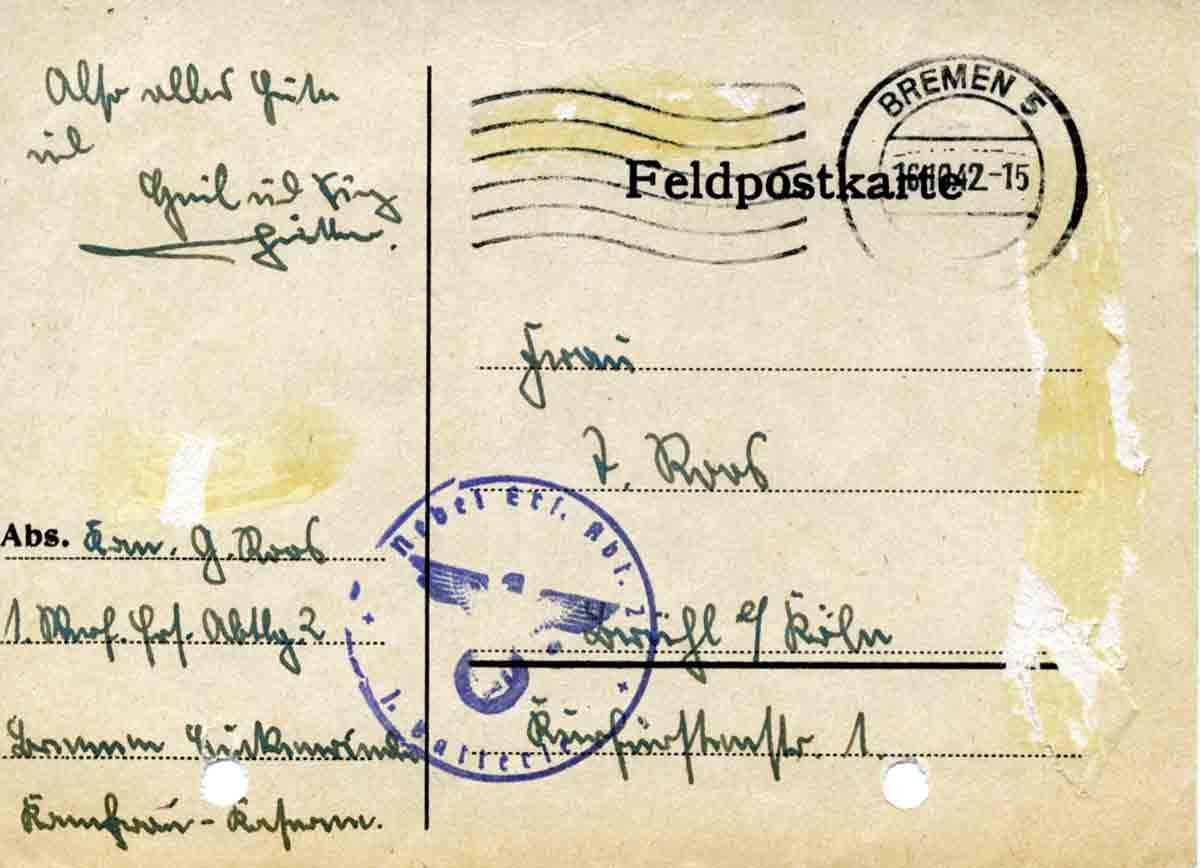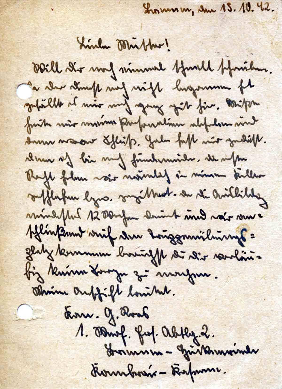 Günther Roos an Mutter Elisabeth, 15. Oktober 1942