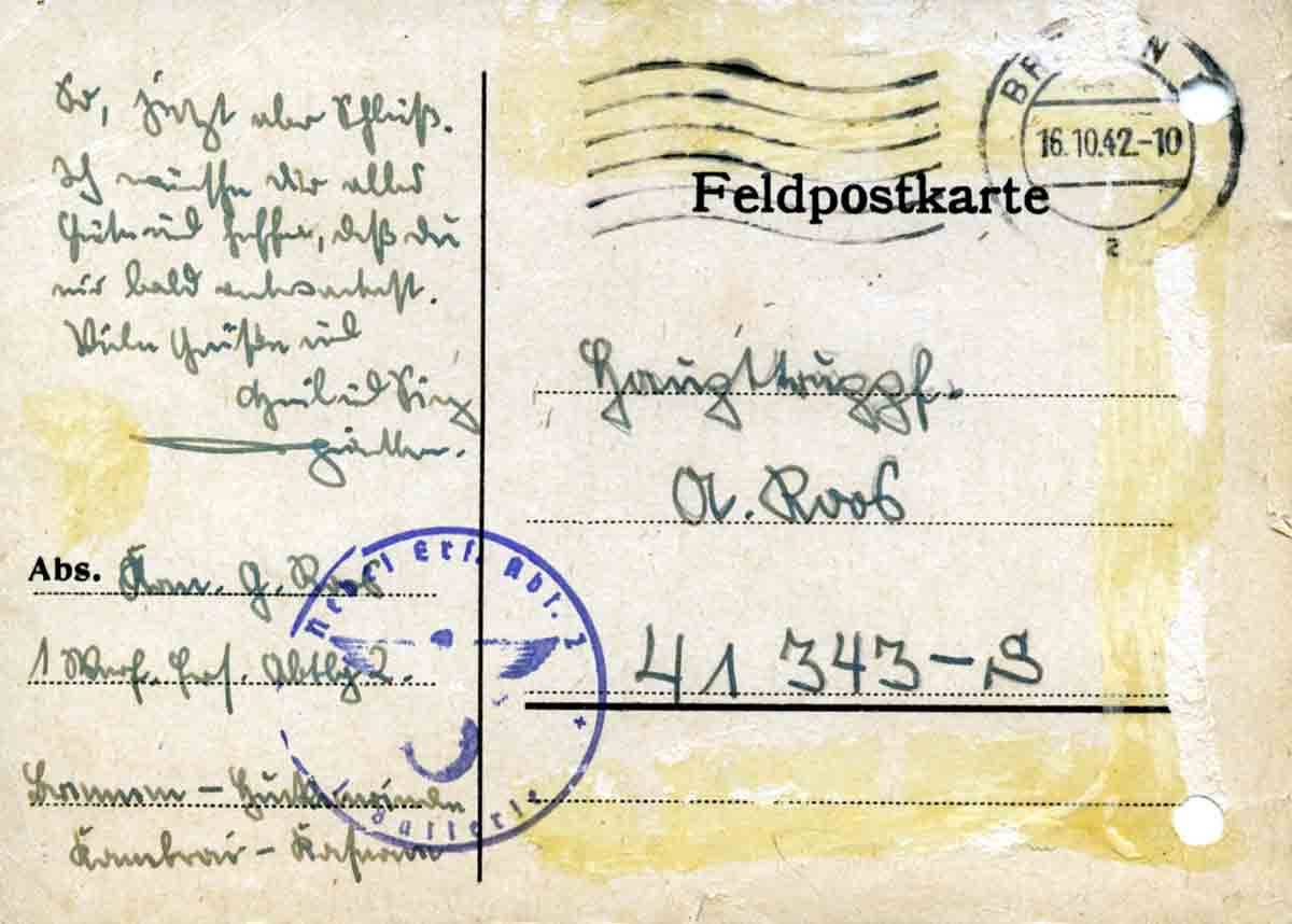 Günther Roos an Vater Toni, 15. Oktober 1942