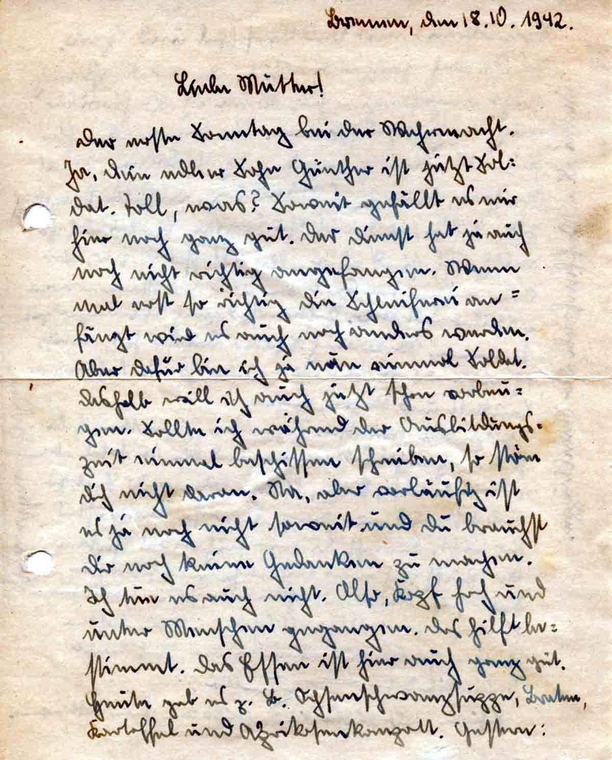 Günther Roos an Mutter Elisabeth, 18. Oktober 1942