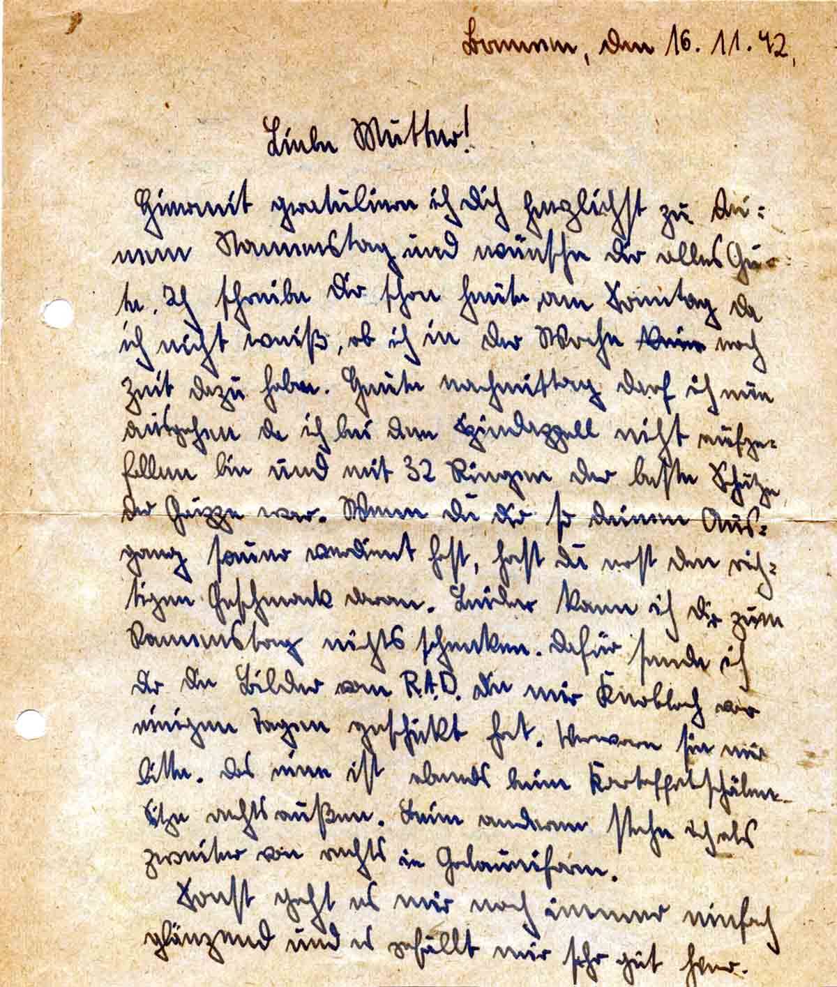 Günther Roos an Mutter Elisabeth, 16. November 1942