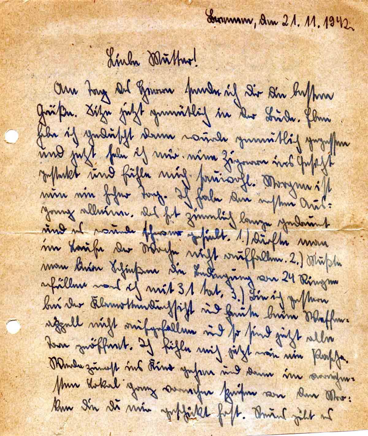 Günther Roos an Mutter Elisabeth, 21. November 1942