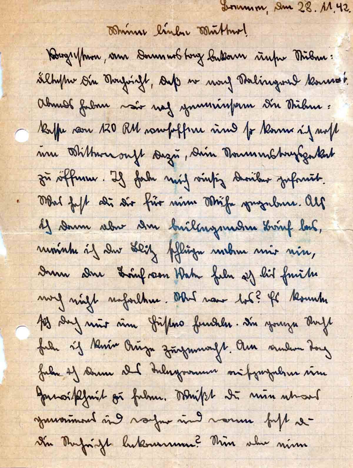 Günther Roos an Mutter Elisabeth, 28. November 1942