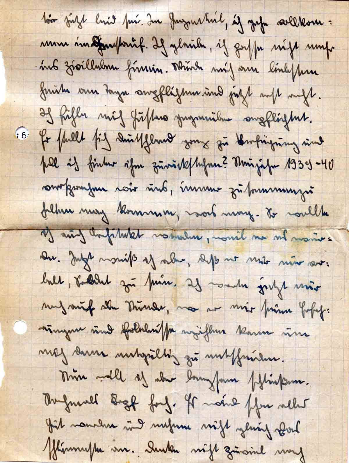 tär jetzt leid sei. Im Gegenteil, ich gehe vollkommen im Dienst auf. Ich glaube ich passe nicht mehr ins Zivilleben hinein. Würde mich am liebsten heute am Tage verpflichten, und jetzt erst recht. Ich fühle mich Gustav gegenüber verpflichtet. Er stellte sich Deutschland ganz zu Verfügung, und soll ich hinter ihm zurückstehen? Neujahr 1939-40 versprachen wir uns, immer zusammenzuhalten, komme, was mag. So wollte ich auch Architekt werden, weil er es wurde. Jetzt weiß ich aber, daß er mir nur vorlebte, Soldat zu sein. Ich warte jetzt nur noch auf die Stunde, wo er mir seine Erfahrungen und Erlebnisse erzählen kann, um mich dann endgültig zu entscheiden.