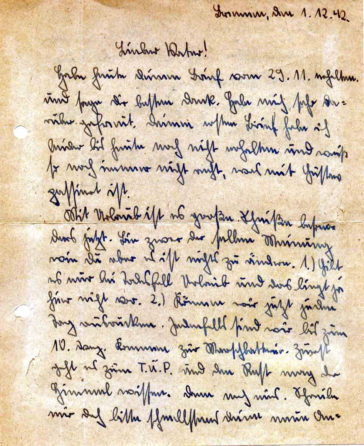 Günther Roos an Vater Toni, 1. Dezember 1942