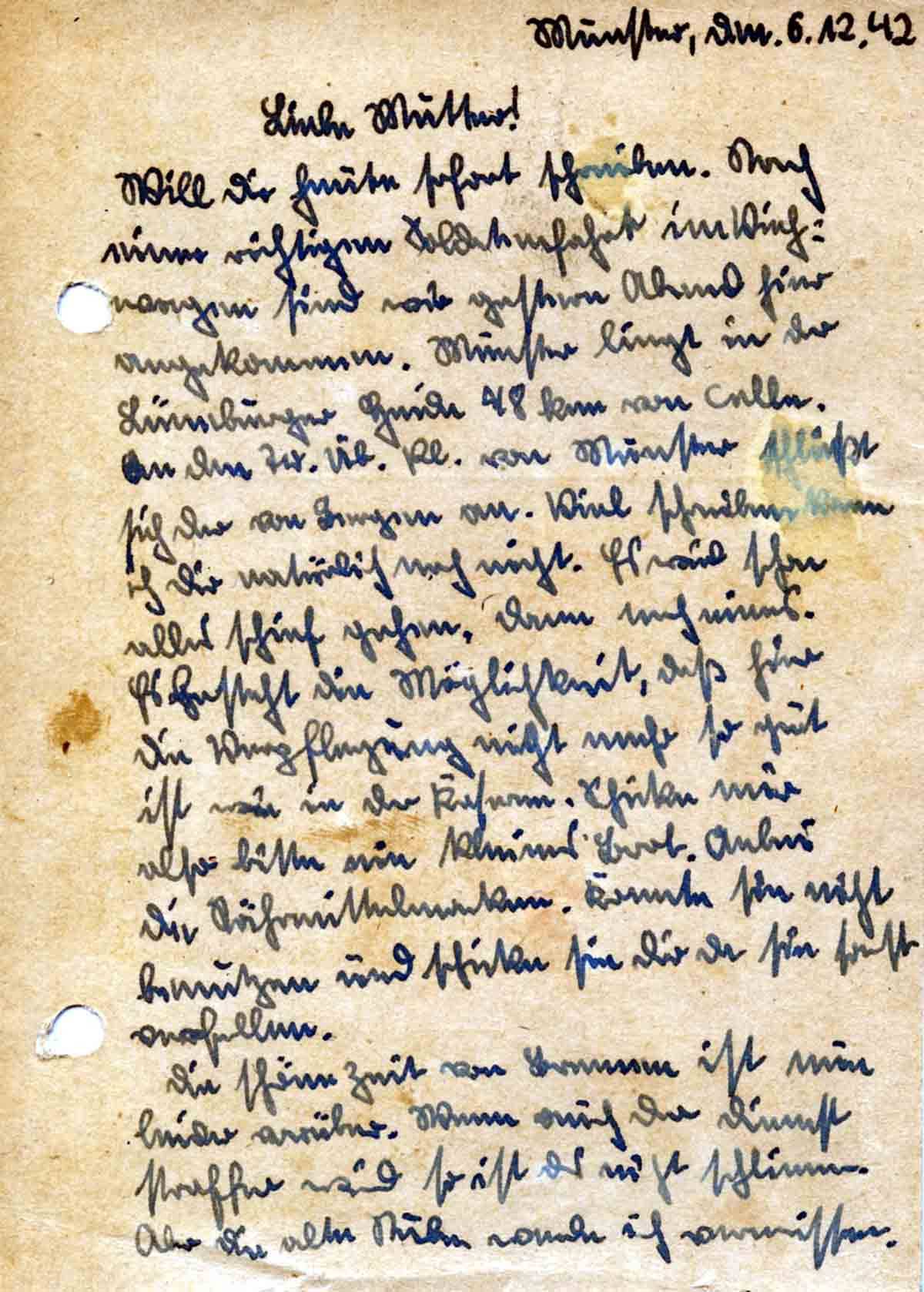 Günther Roos an Mutter Elisabeth, 6. Dezember 1942
