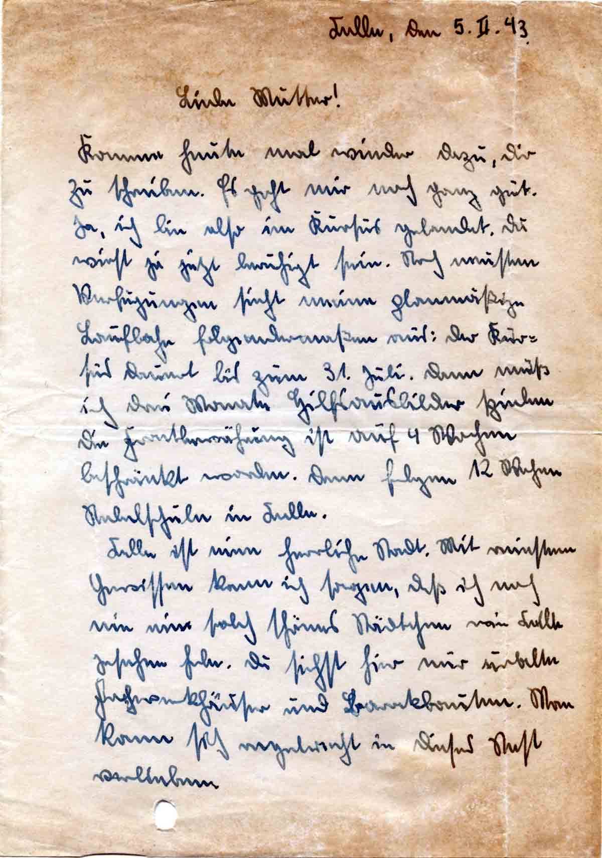 Günther Roos an Mutter Elisabeth, 5. Februar 1943