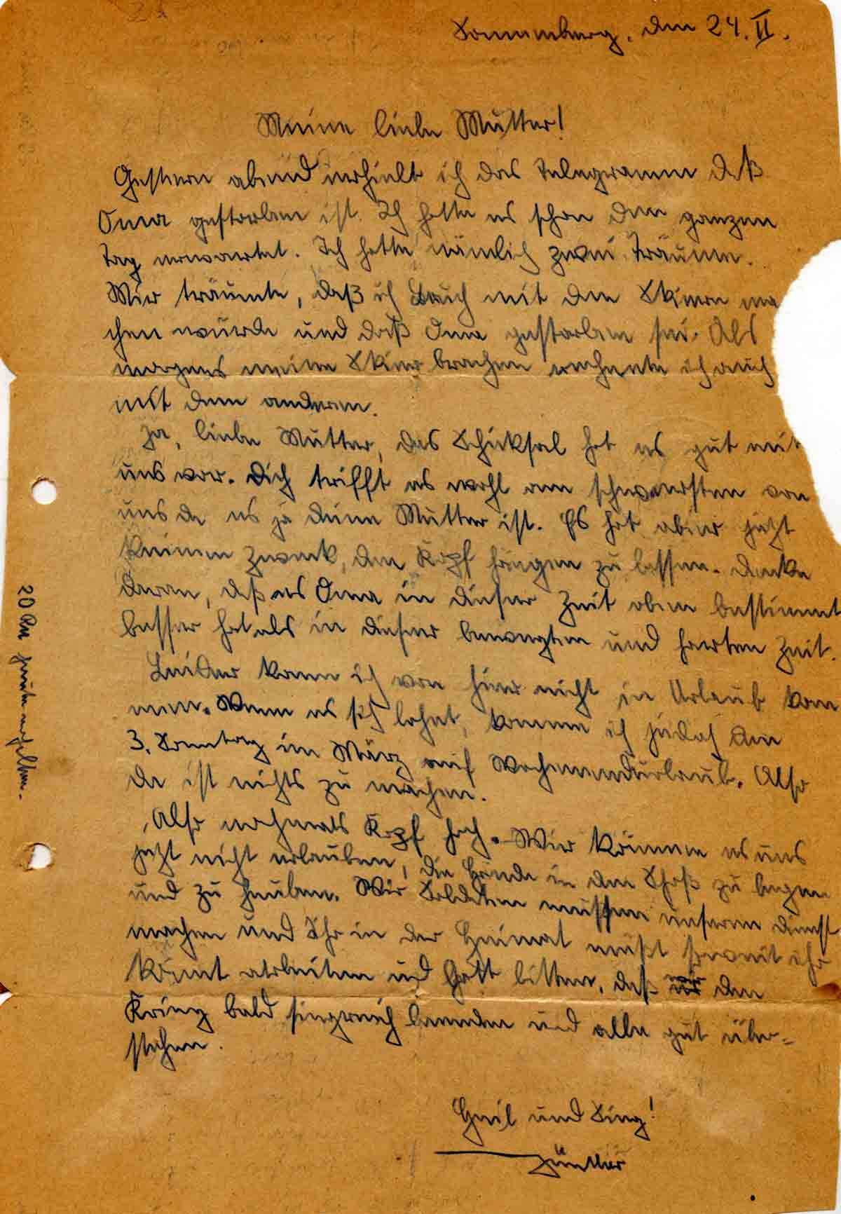 Günther Roos an Mutter Elisabeth, 24. Februar 1943