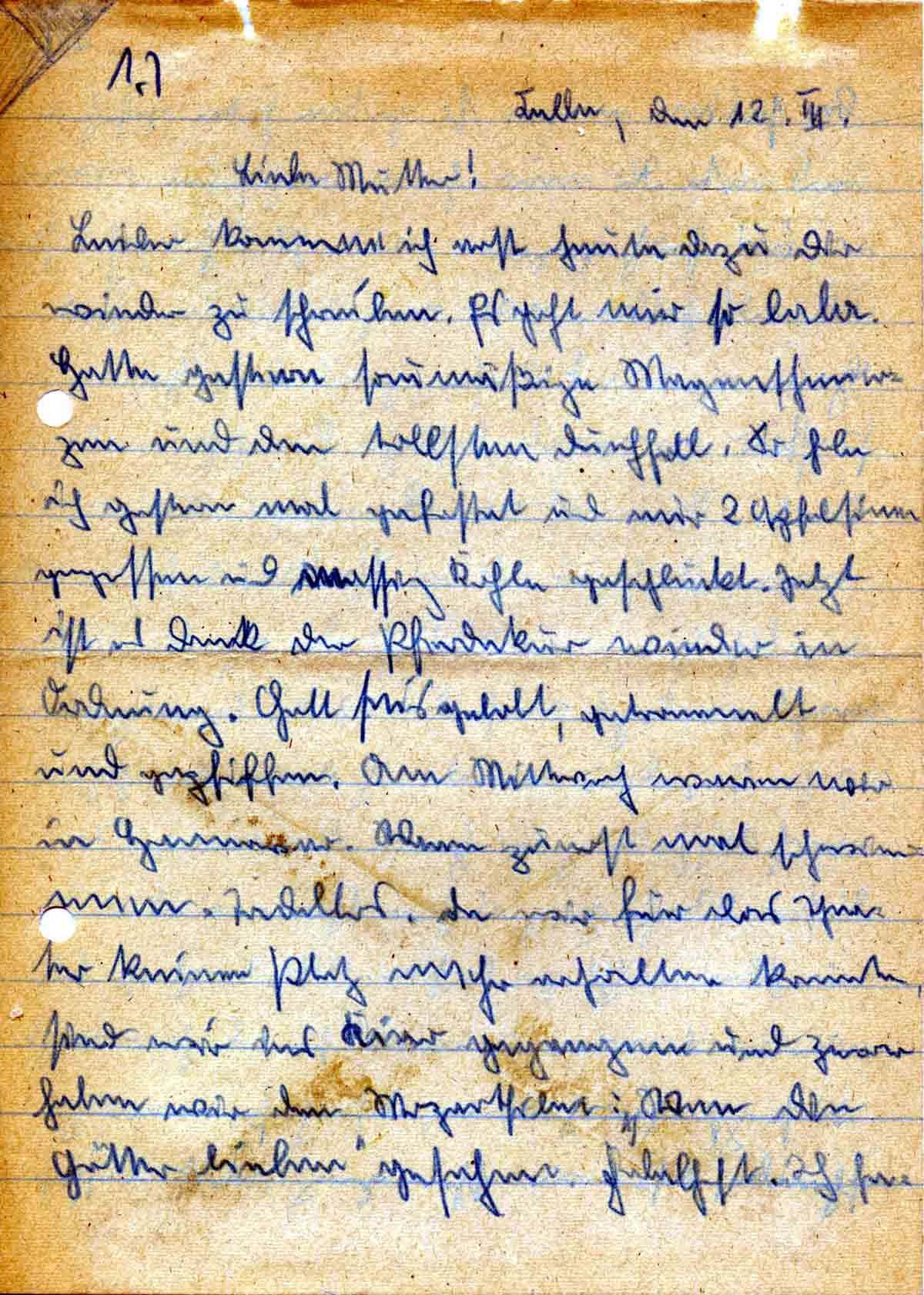Günther Roos an Mutter Elisabeth, 12. März 1943