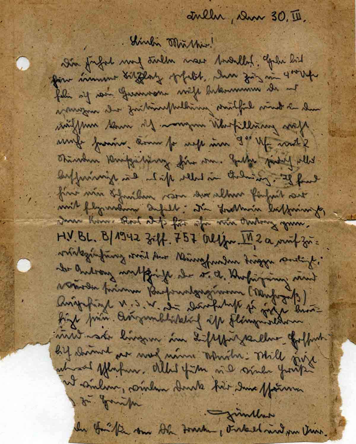 Günther Roos an Mutter Elisabeth, 30. März 1943
