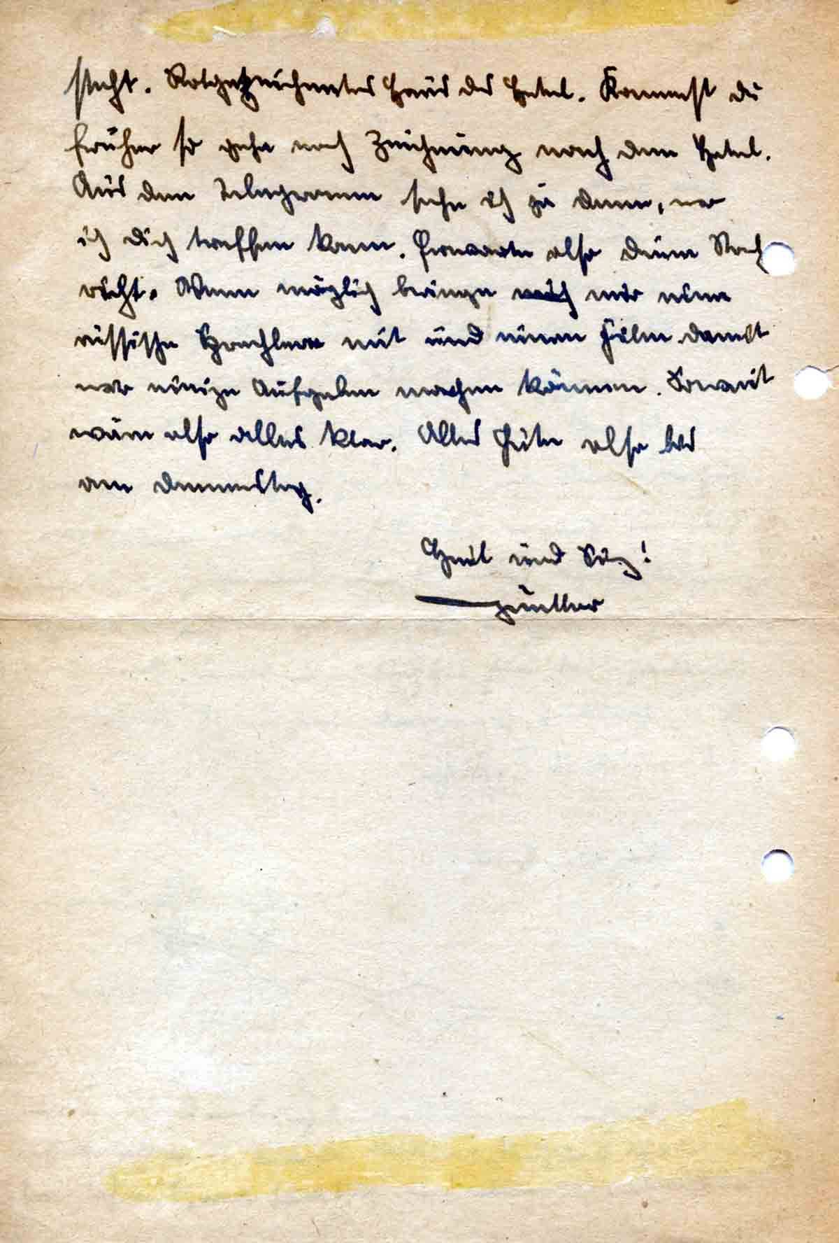 Habe heute endlich nach langem, vergeblichem Suchen ein Zimmer für Dich gefunden. Habe gemietet von Donnerstag den 23.4. bis Freitag, den 30.4. Wenn Du mal eine Woche hier warst, wird es langsam Zeit für Dich wieder abzuhauen, da ich 1.) sonst unangenehm auffalle und 2.) versuchen werde am 1.5. nach Brühl zu kommen. Habe ein Zimmer im Kronprinzenhof gemietet. Dieser Laden hat nun Donnerstags zu. Wenn möglich telegraphiere mir, wann Du hier ankommst, damit ich dort noch Bescheid sagen kann. Kommst Du nachmittags, so erwarte mich um 18 Uhr in Bahnhofsgastwirtschaft II. Klasse.