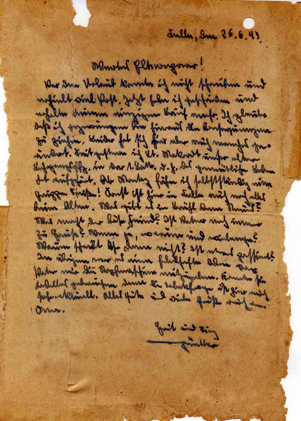 Günther Roos an seine Eltern, 26. Juni 1943
