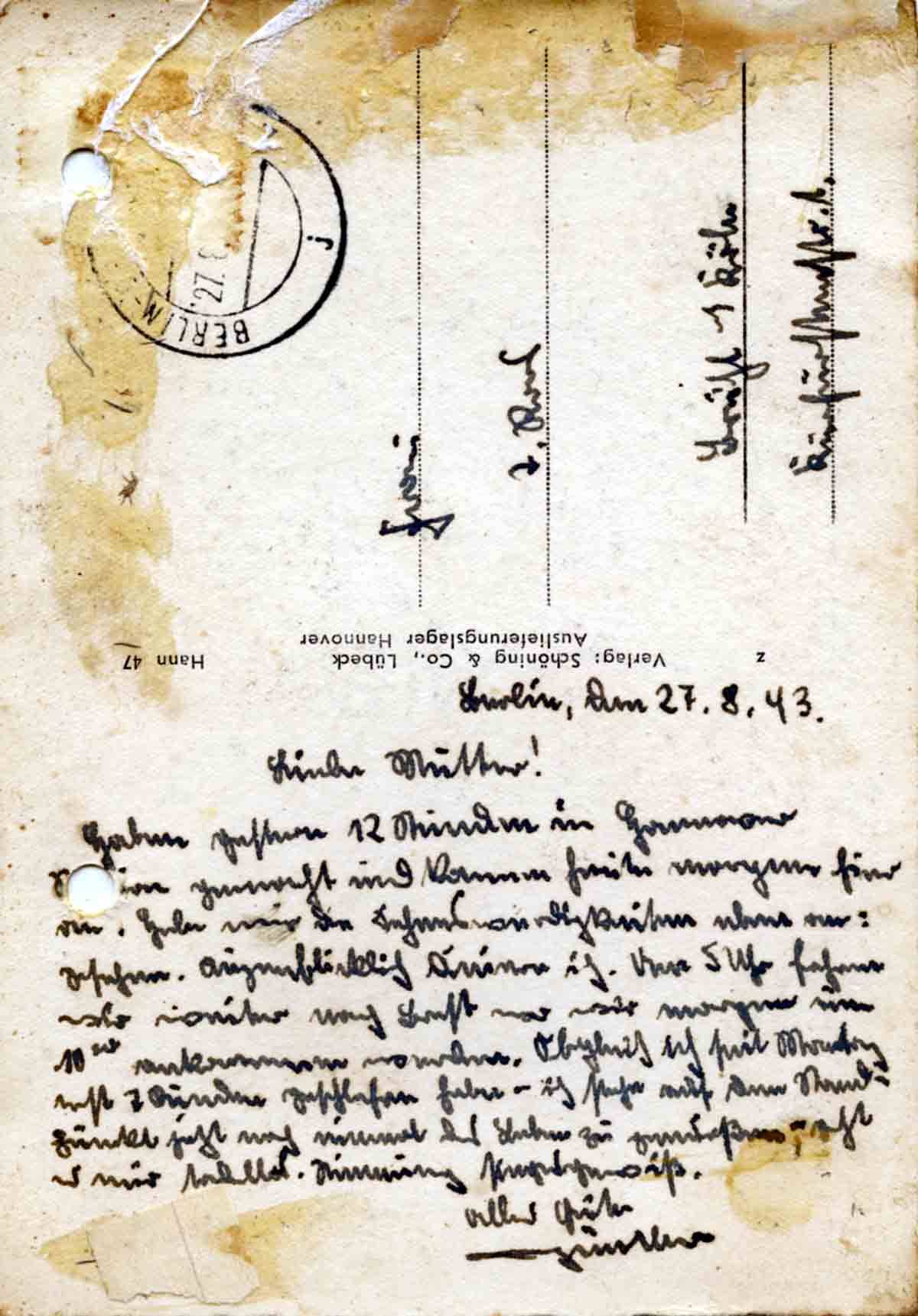 Günther Roos an Mutter Elisabeth, 28. August 1943