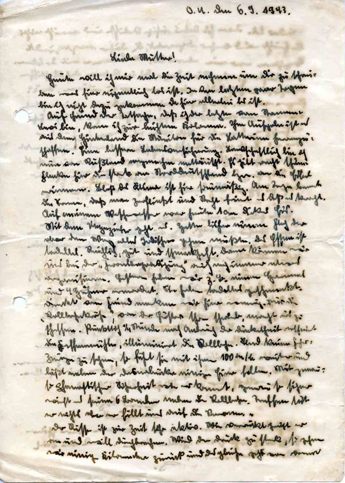 Günther Roos an Mutter Elisabeth, 6. September 1943