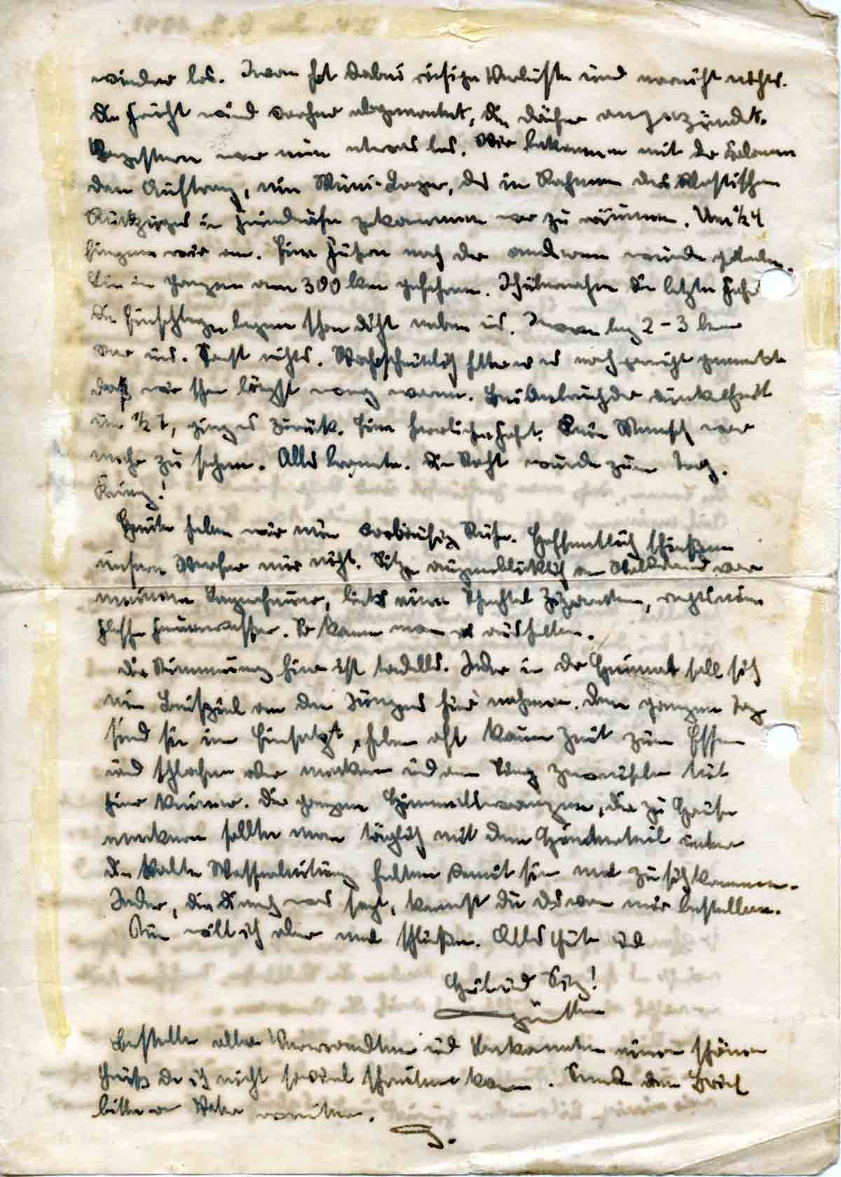 Bestell allen Verwandten und Bekannten einen schönen Gruß, da ich nicht so viel schreiben kann. Sende den Brief bitte an Vater weiter.