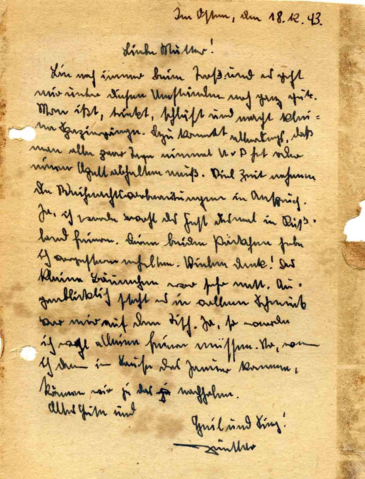 Günther Roos an Mutter Elisabeth, 18. Dezember 1943