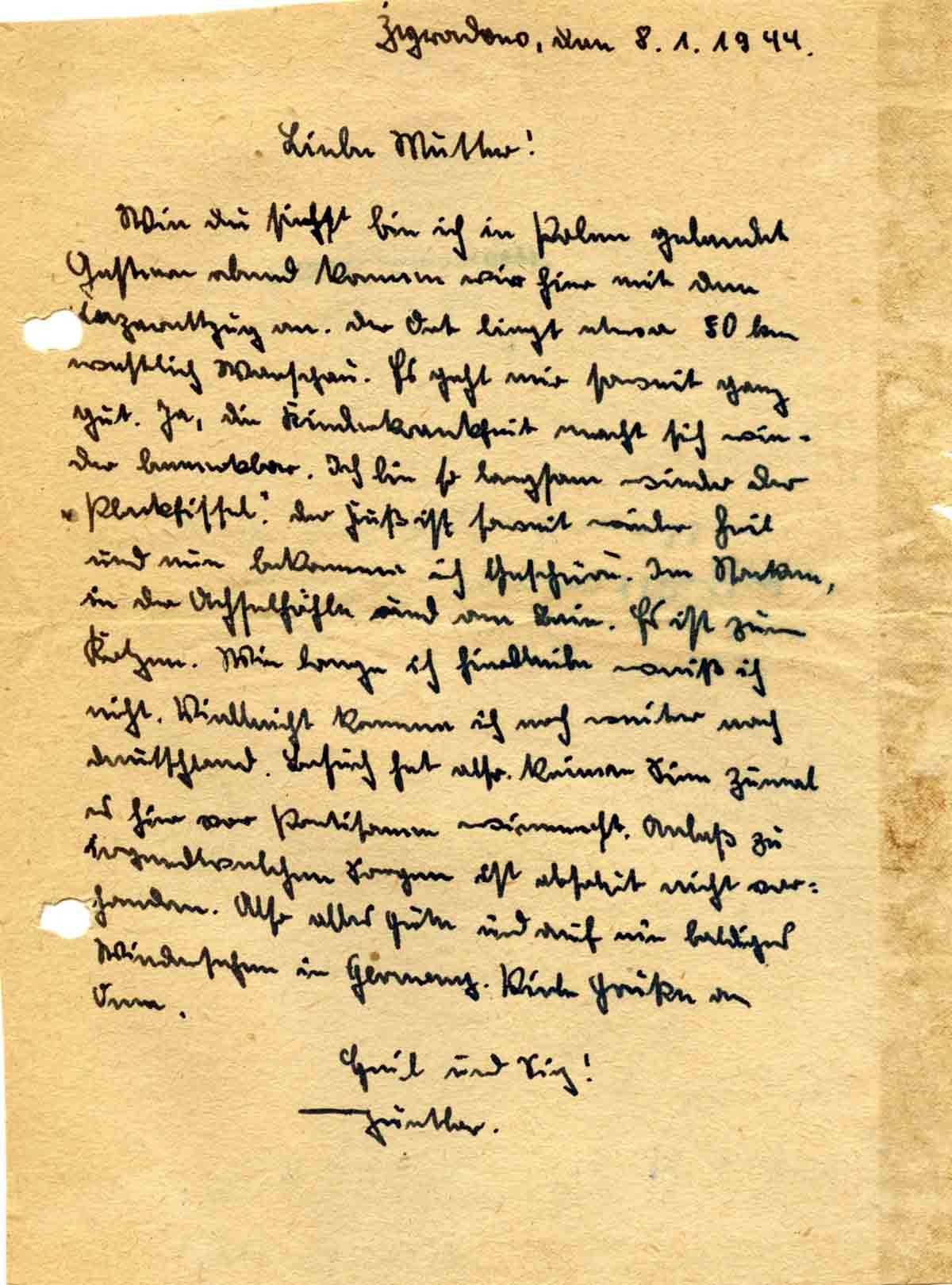 Günther Roos an Mutter Elisabeth, 8. Januar 1944