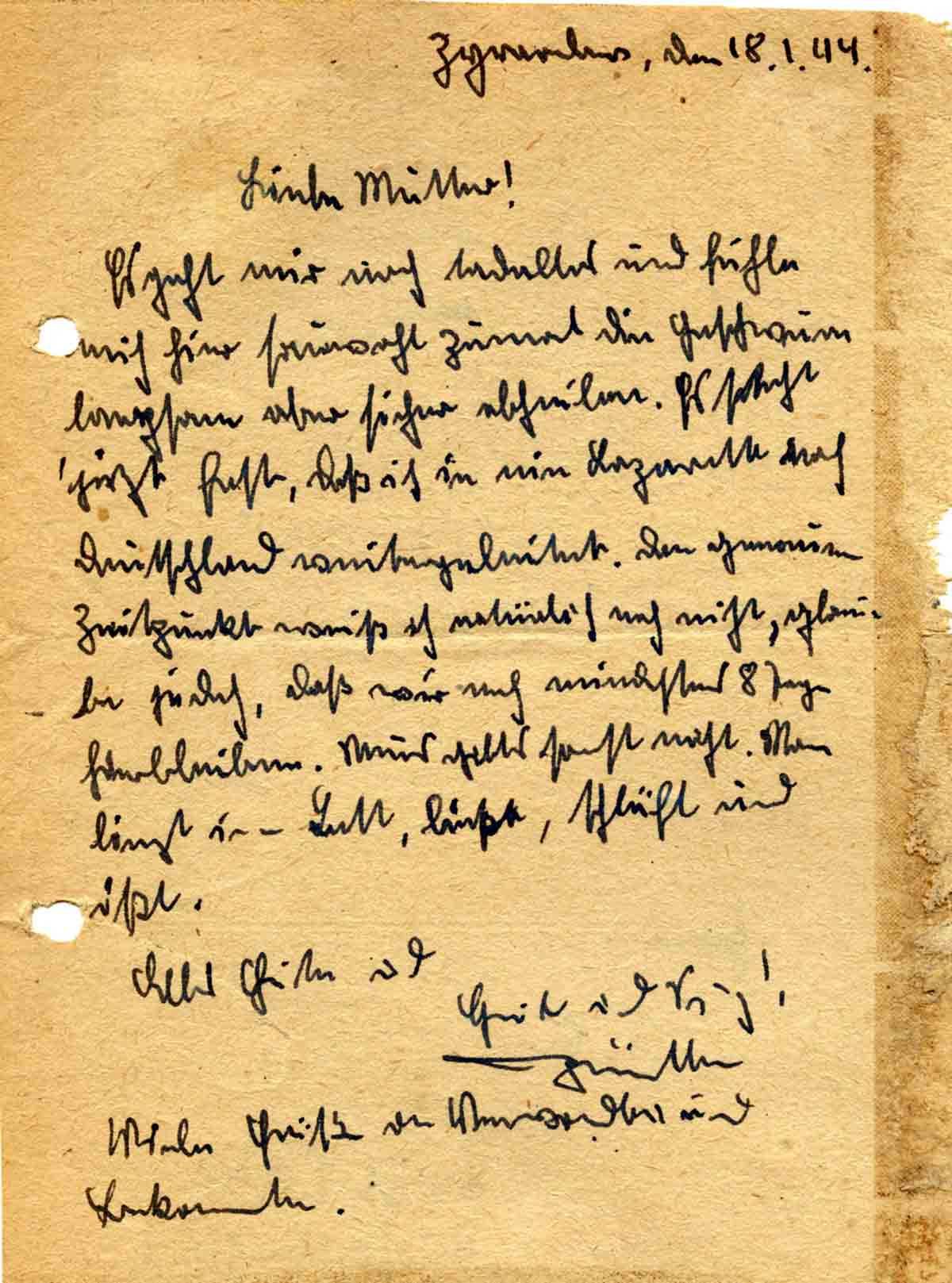 Günther Roos an Mutter Elisabeth, 18. Januar 1944