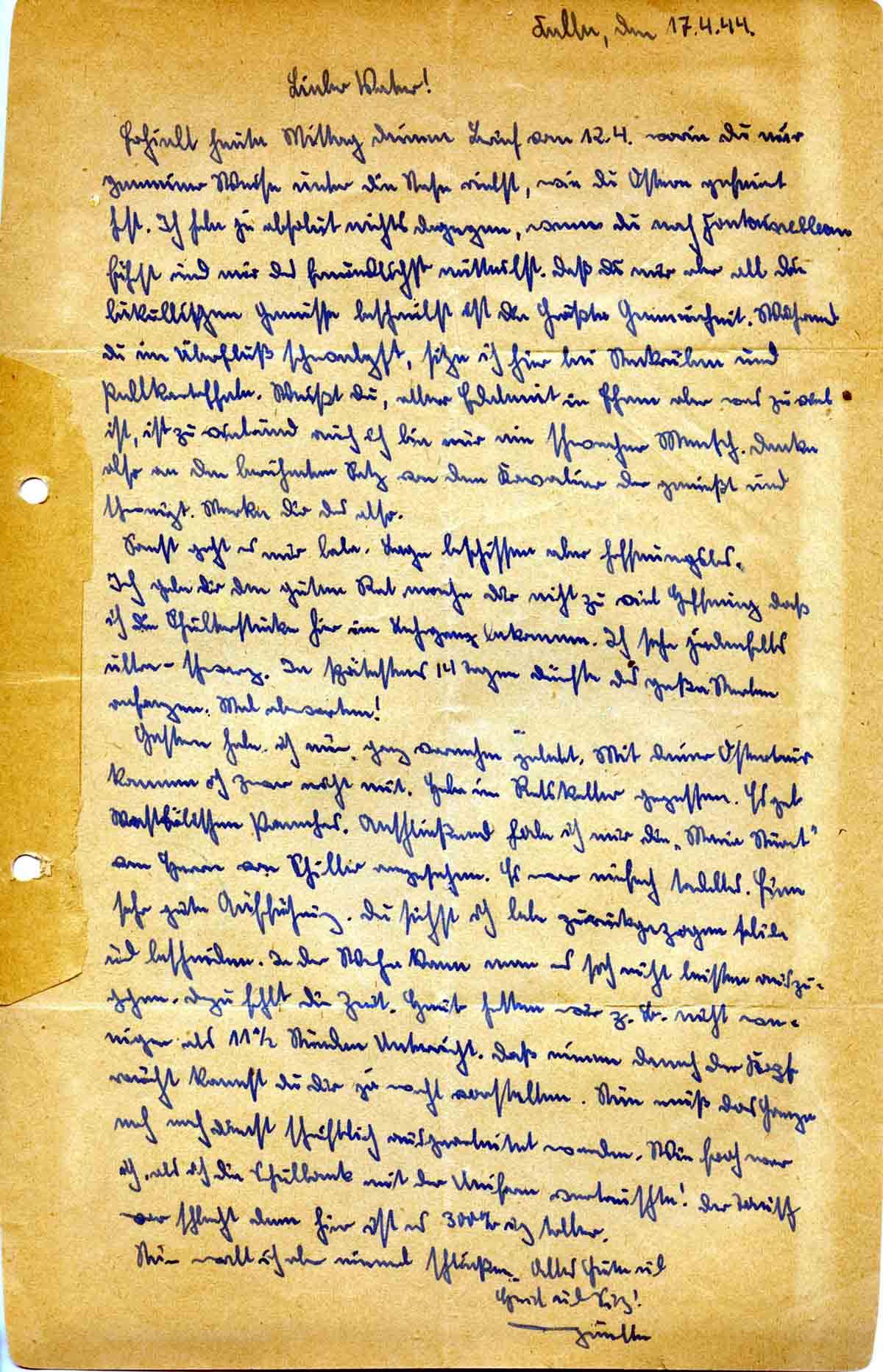 Günther Roos an Vater Toni, 17. April 1944
