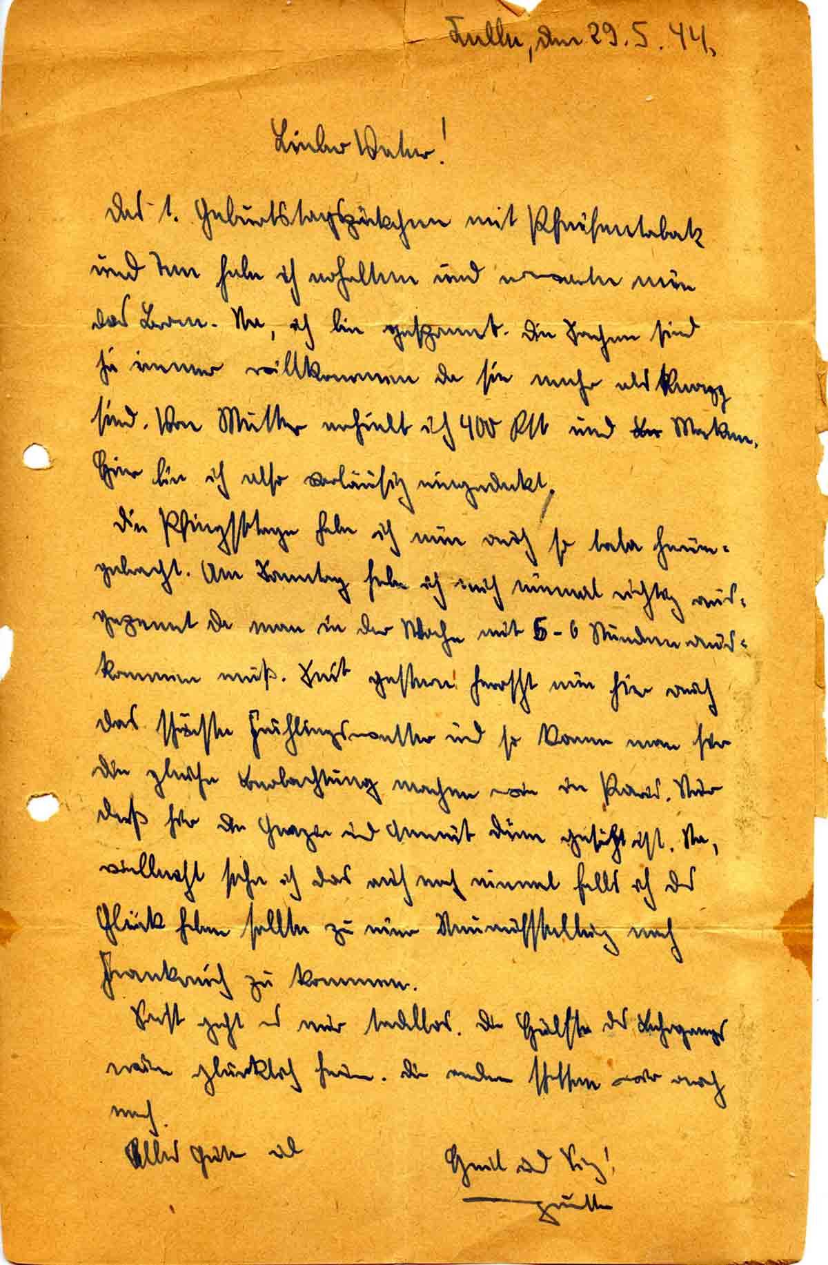 Günther Roos an Vater Toni, 29. Mai 1944