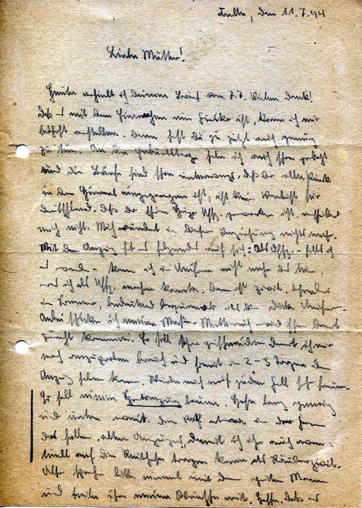 Günther Roos an Mutter Elisabeth, 11. Juli 1944