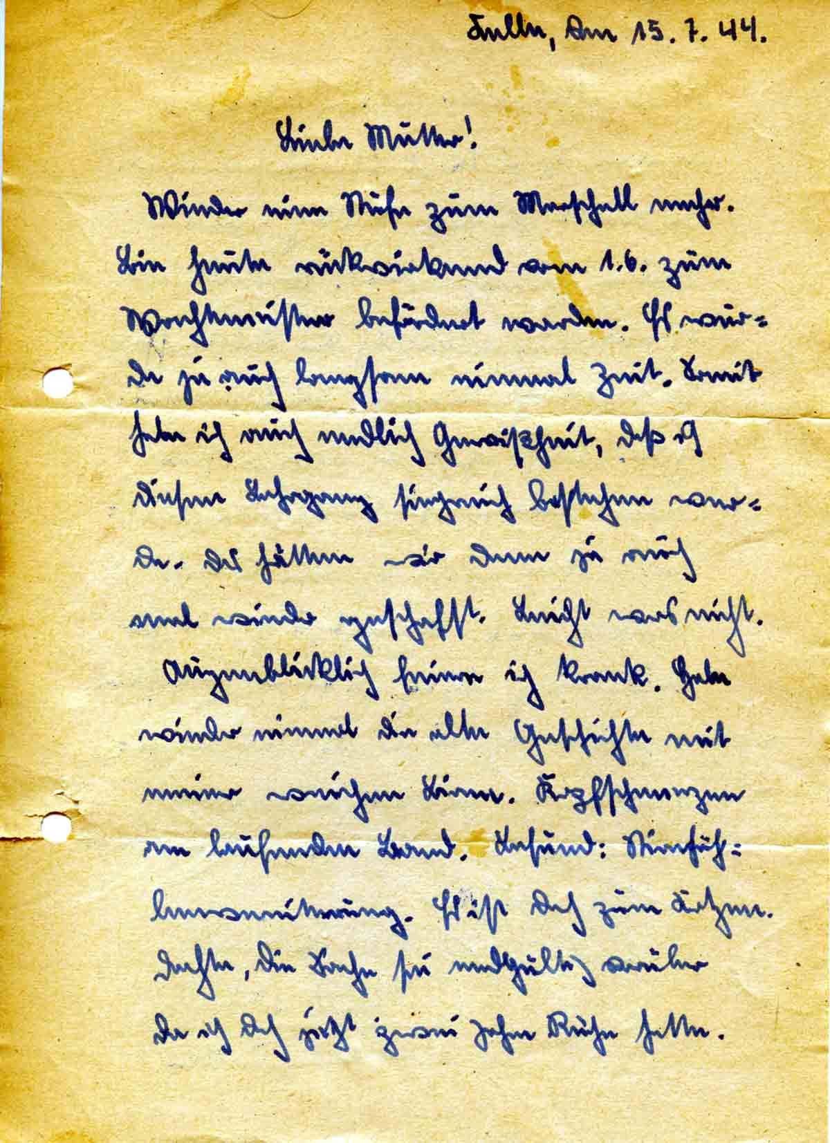 Günther Roos an Mutter Elisabeth, 15. Juli 1944
