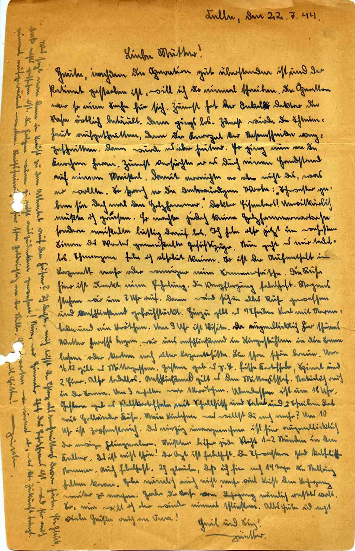 Günther Roos an Mutter Elisabeth, 22. Juli 1944