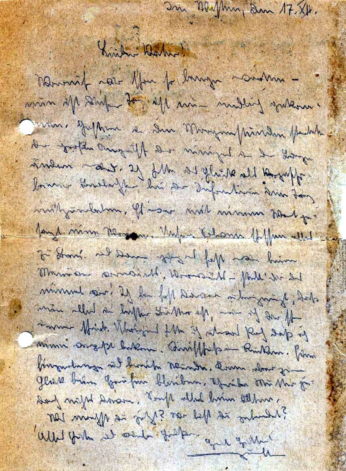 Günther Roos an Vater Toni, 17. Dezember 1944