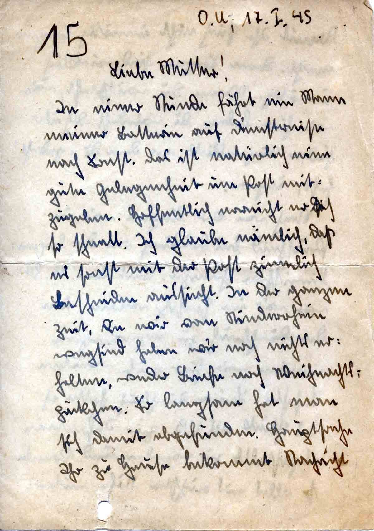 Günther Roos an Mutter Elisabeth, 17. Januar 1945