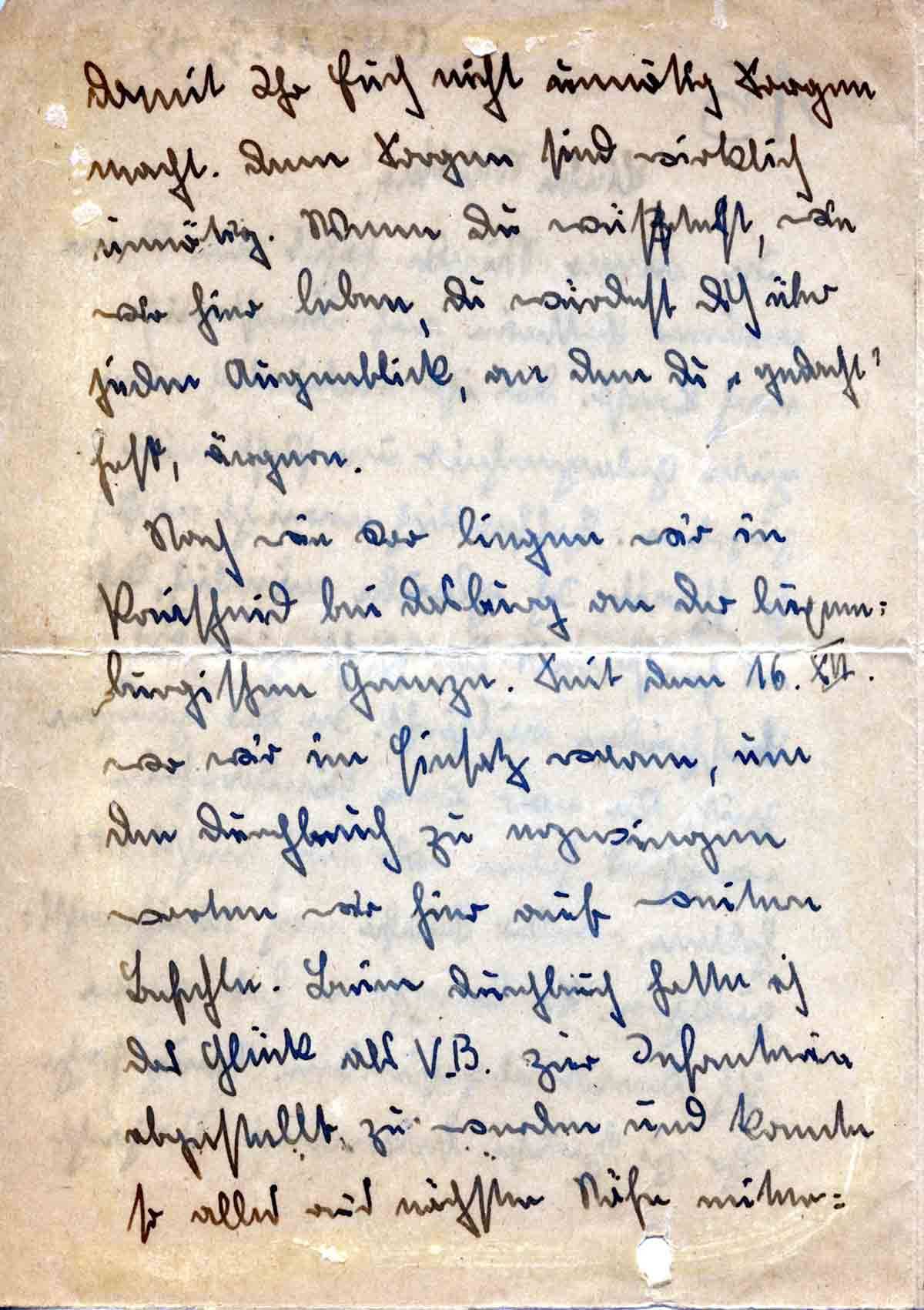 In einer Stunde fährt ein Mann meiner Batterie auf Dienstreise nach Soest. Das ist natürlich eine gute Gelegenheit, um Post mitzugeben. Hoffentlich erreicht er Dich so schnell. Ich glaube nämlich, daß es sonst mit der Post ziemlich bescheiden aussieht. In der ganzen Zeit, die wir vom Niederrhein weg sind, haben wir noch nichts erhalten, weder Briefe noch Weihnachtspäckchen. So langsam hat man sich damit abgefunden. Hauptsache, ihr zu Hause bekommt Nachricht,