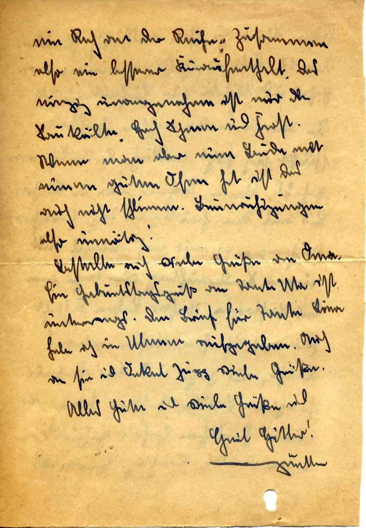 Bestelle auch viele Grüße an Oma. Ein Geburtstagsgruß an Tante Uta ist unterwegs. Den Brief für Tante Lina habe ich in Ulmen aufgegeben. Auch an sie und Onkel Jupp viele Grüße.