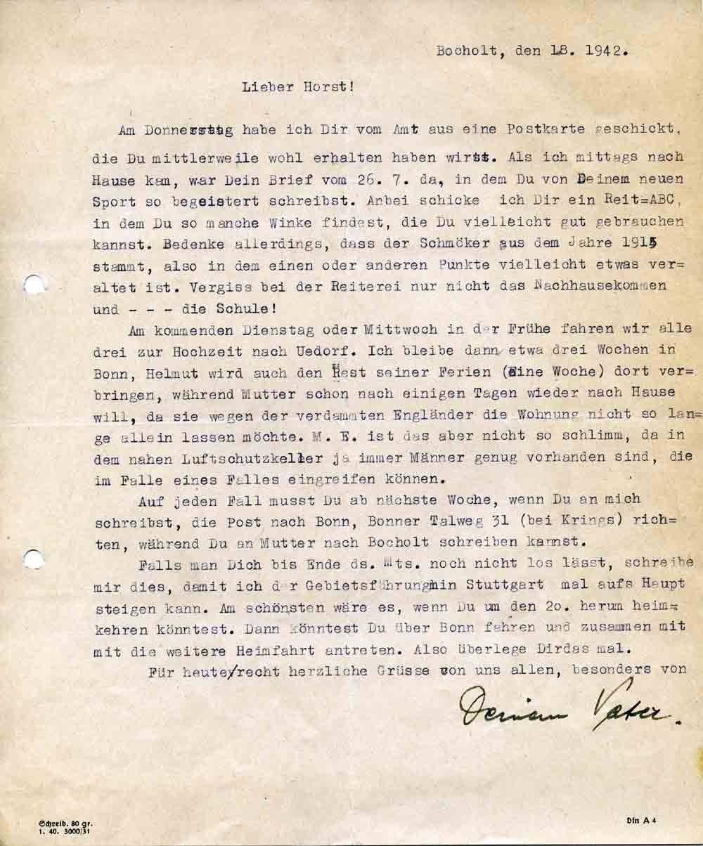 Vater Schmitt an Sohn Horst, 1. August 1942