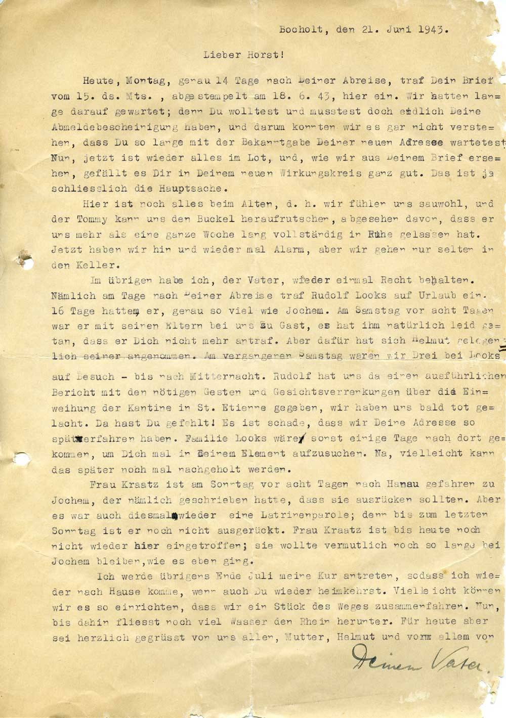 Vater Schmitt an Sohn Horst, 21. Juni 1943
