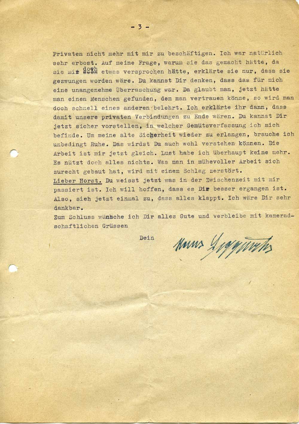 Lieber Horst. Du weisst jetzt was in der Zwischenzeit mit mir passiert ist. Ich will hoffen, dass es Dir besser ergangen ist. Also, sieh jetzt einmal zu, dass alles klappt. Ich wäre Dir sehr dankbar.