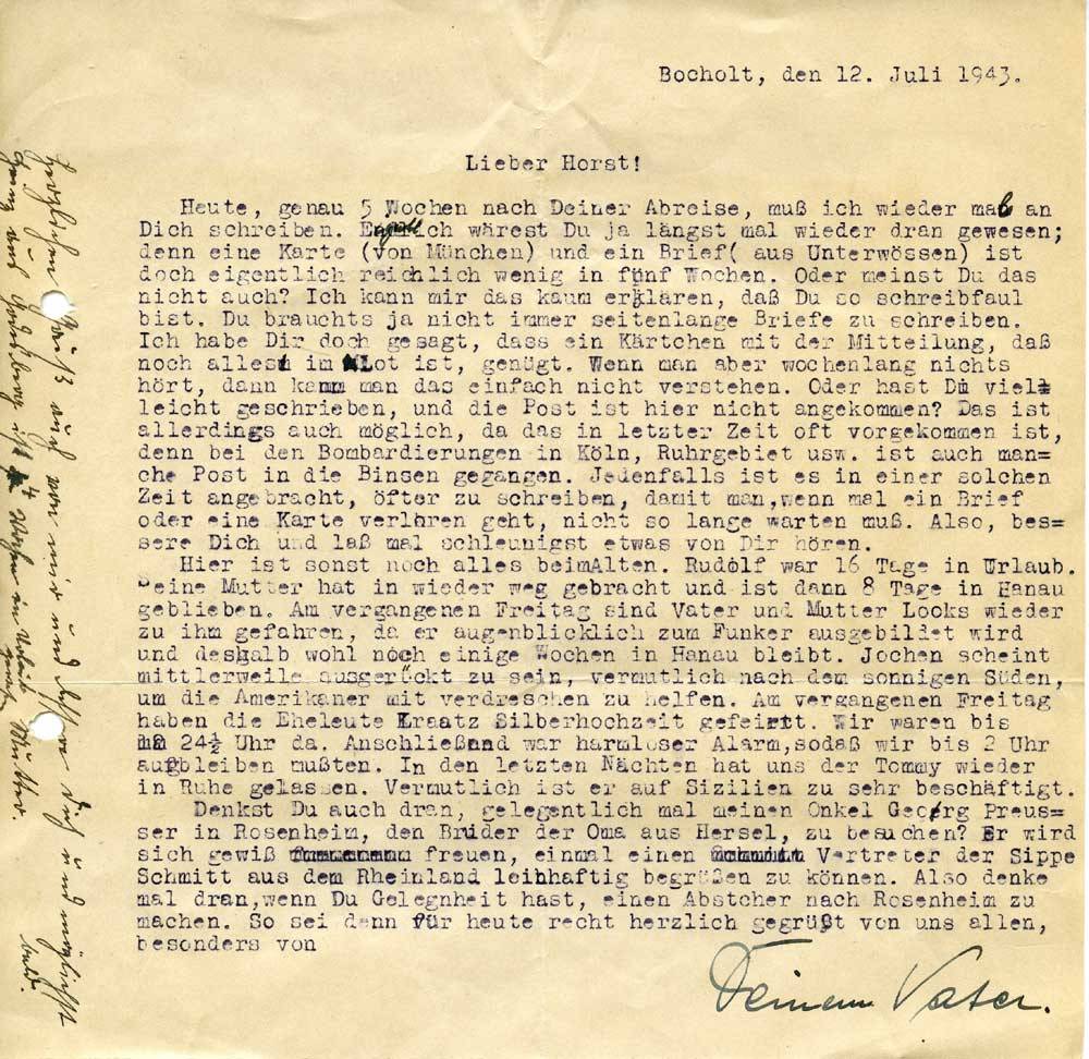 Vater Schmitt an Sohn Horst, 12. Juli 1943
