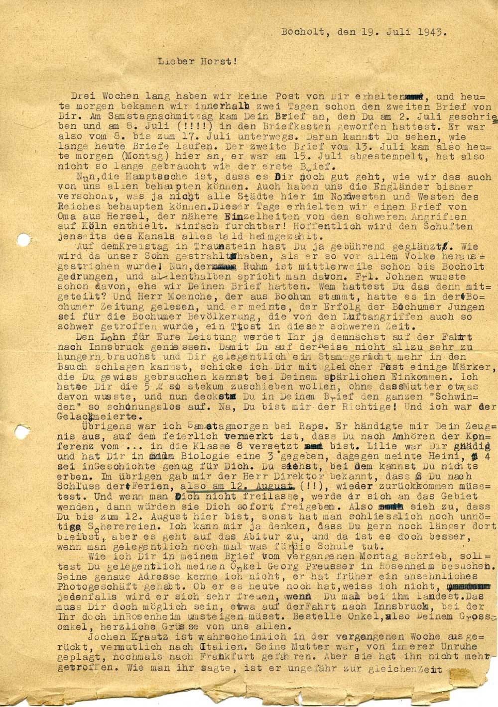 Vater Schmitt an Sohn Horst, 19. Juli 1943