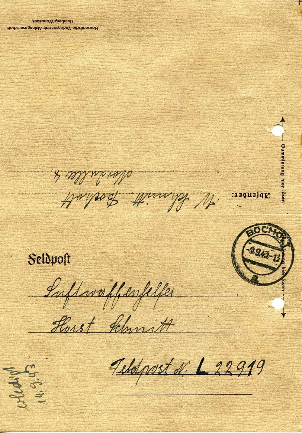 Mutter Schmitt an Sohn Horst, 9. September 1943
